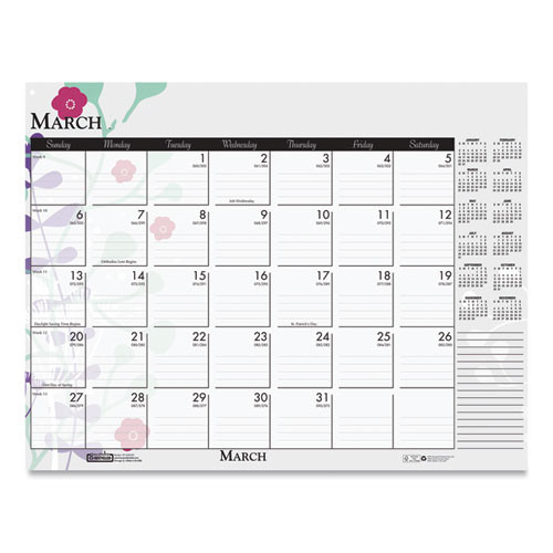 Recycled Desk Pad Calendar, Wild Flowers Artwork, 18.5 X 13, White Sheets, Black Binding/corners,12-month (jan-dec): 2022