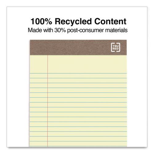 100% Recycled Notepads, Narrow Rule, (50) Canary Yellow 5 x 8 Sheets, Dozen