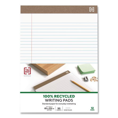 100% Recycled Notepads, Wide/Legal Rule, (50) White 8.5 x 11 Sheets, Dozen