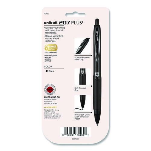 207 Plus+ Gel Pen, Retractable, Medium 0.7 Mm, Black Ink, Black Barrel, 4/pack