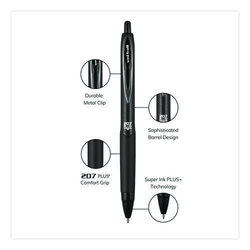 207 Plus+ Gel Pen, Retractable, Medium 0.7 Mm, Black Ink, Black Barrel, Dozen - VISUBC70462