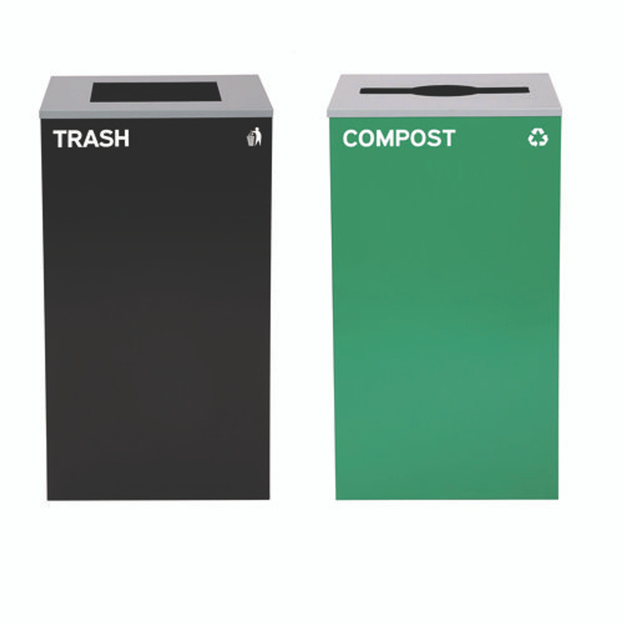 29 Gallon Trash/recycling Cans, Steel, Green Compost Can With Mixed Lid, Black Trash Can With Square Lid