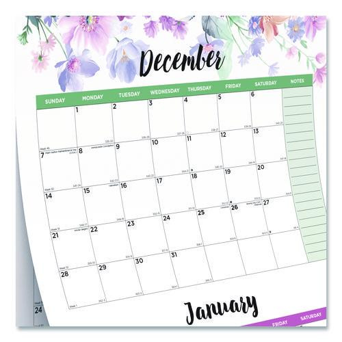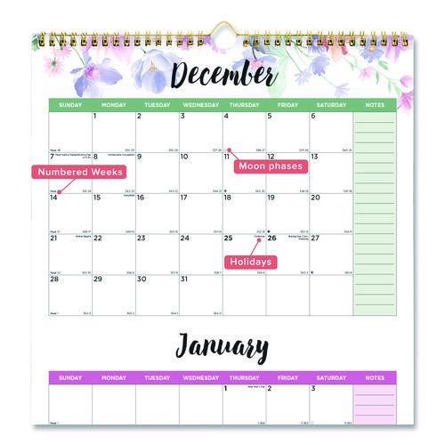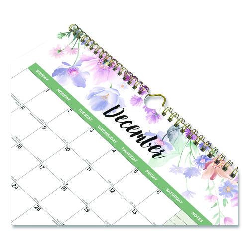 3-month Wall Calendar, Floral Artwork, 12.25 X 27, White/multicolor Sheets, 12-month (jan To Dec): 2022