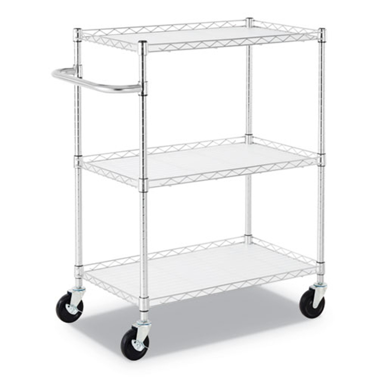 3-shelf Wire Cart With Liners, 34.5w X 18d X 40h, Silver, 600-lb Capacity