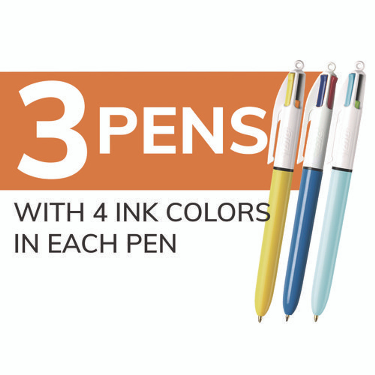 4-color Multi-color Ballpoint Pen, Retractable, Medium 1 Mm, Assorted Ink And Barrel Colors, 3/pack