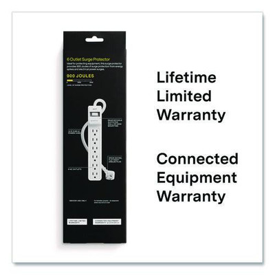 6-Outlet Surge Protector, 6 AC Outlets, 12 ft Cord, 900 J, White