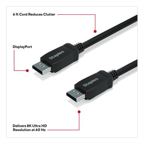 8K DisplayPort to DisplayPort Audio/Video Cable, 6 ft, Black