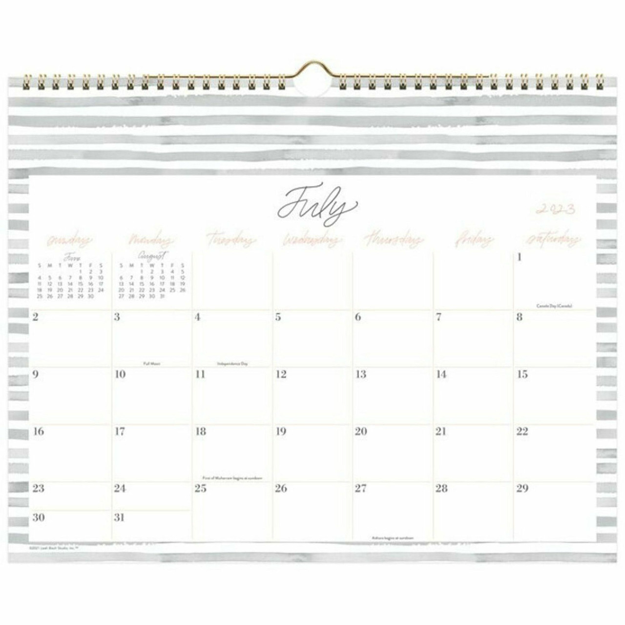 Add some fun to your planning with the Cambridge Leah Bisch Academic Wall Calendar that helps you keep your day, month and year organized with fresh, simplistic style that features a subtle Stripe pattern. It ranges 12 months from July to June. Two-page-per-month spreads have unruled daily blocks (2-13/16" x 2-3/16") for open scheduling of events, plans and reminders. Past and future reference calendars are displayed on each page for quick date-checking. Gold twin-wire binding keeps pages secure and has a built-in hanging loop for easy wall display.