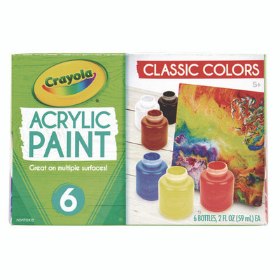 Acrylic Paint Set, Six Assorted Classic Colors, 2 Oz Bottles, 6/box