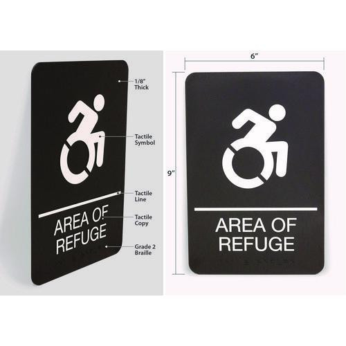 Ada Sign, Area Of Refuge, 6 X 9, Black Face, White Graphics
