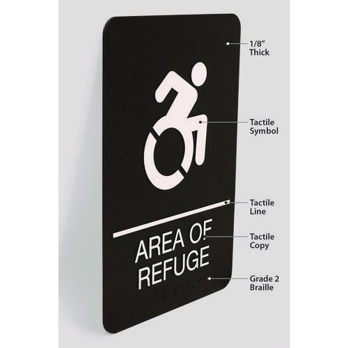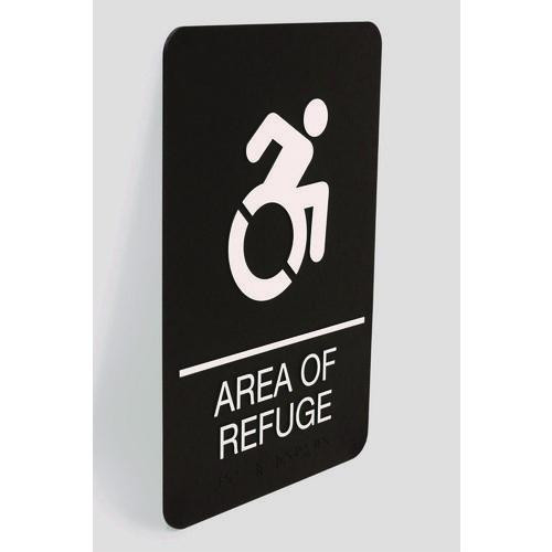 Ada Sign, Area Of Refuge, 6 X 9, Black Face, White Graphics