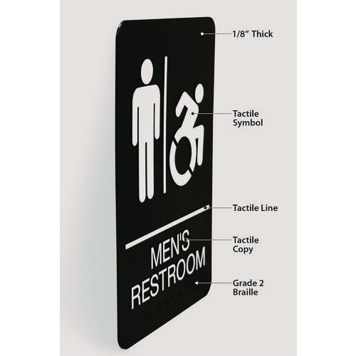 Ada Sign, Men's Restroom, 6 X 9, Black Face, White Graphics