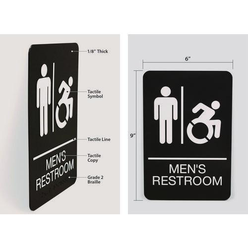 Ada Sign, Men's Restroom, 6 X 9, Black Face, White Graphics