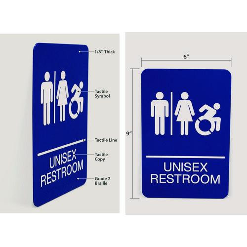 Ada Sign, Unisex Restroom, 6 X 9, Blue Face, White Graphics