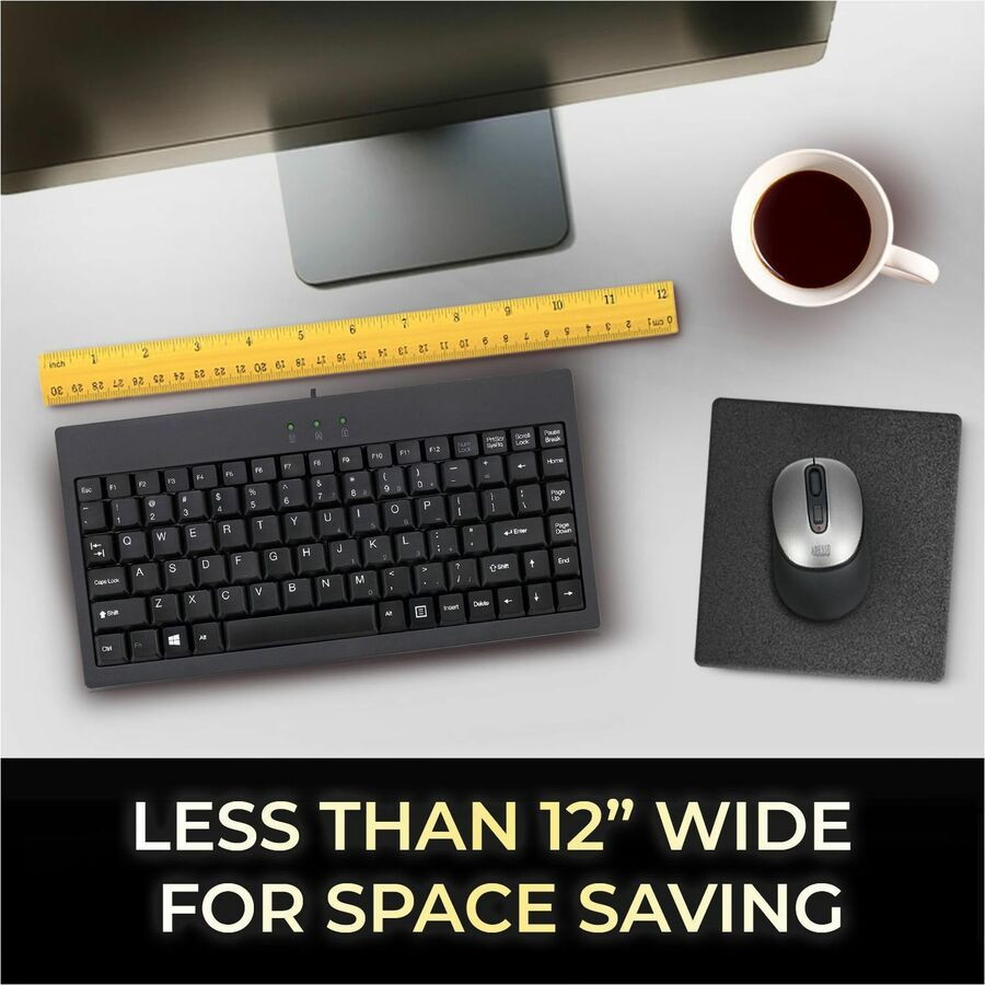 Adesso Mini Keyboard (Black) - Cable Connectivity - USB Interface - 87 Key(s) - Windows Key Hot Key(s) - Windows Vista, Windows 2000, Windows XP, Windows 10, Windows 8, Windows 7 - English, French - Point of Sale (POS), Desktop Computer, Notebook,...