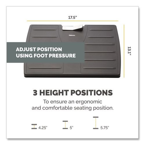 Adjustable 3-Height Footrest, Tilt Lock, 17.5w x 13.13d x 4.38 to 5.63h, Black/Silver