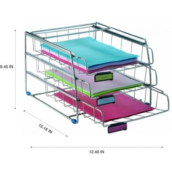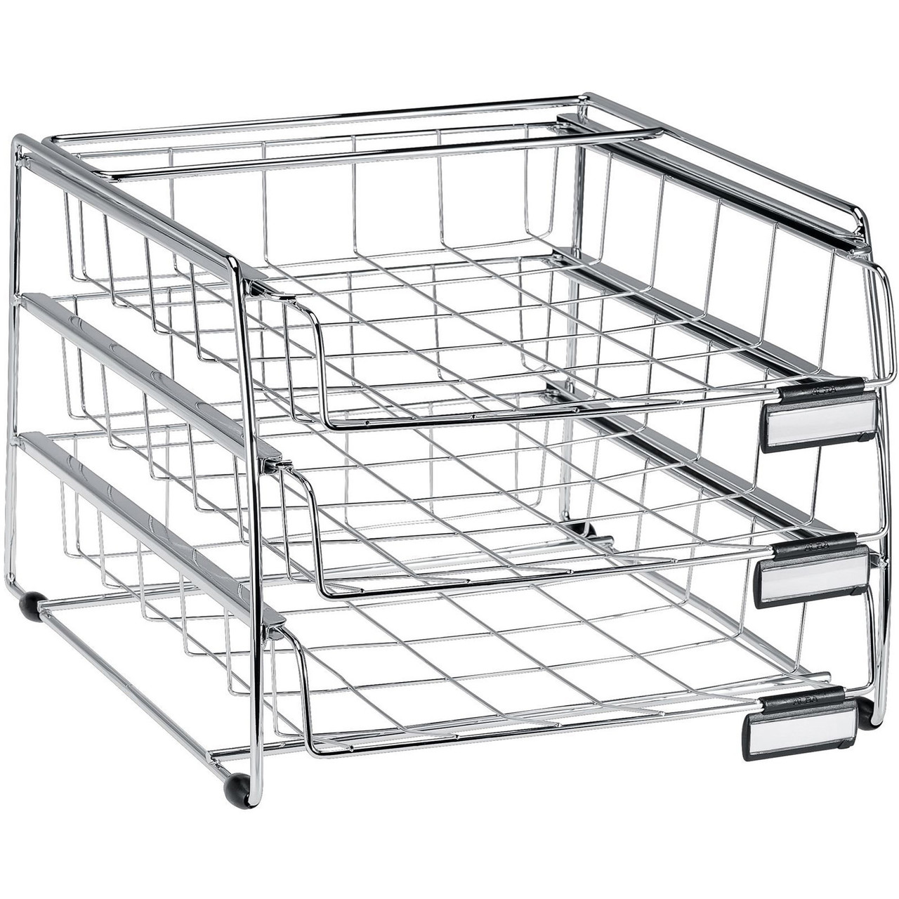 Use this 3-Drawer Sliding Mail Basket to improve your organization. With its modern design in chromed metal wire, this basket will perfectly match your work environment. Load all documents up to A4 format in the 2-1/2" high drawers. Mail basket includes three sliding drawers, three removable label holders made of black plastic and two sets of nonslip, Elastomer pads for stability.