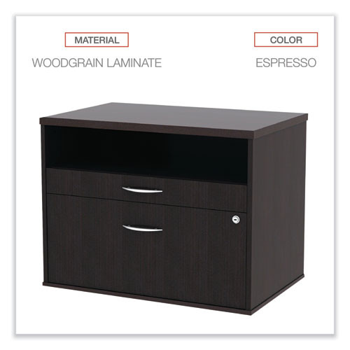 Alera Open Office Desk Series Low File Cabinet Credenza, 2-drawer: Pencil/file,legal/letter,1 Shelf,espresso,29.5x19.13x22.88