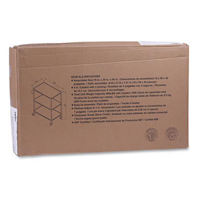 Add To Quote Alera® 3-shelf Wire Cart With Liners, 34.5w X 18d X 40h, Silver, 600-lb Capacity Three adjustable shelves with pull handle. Includes three shelf liners, four 35" poles and four casters (two locking). Shelves adjust in 1" increments. Includes three shelf liners and four casters... Add To Quote