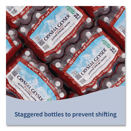 Only 100% Natural Spring Water. Most other bottled waters start with municipal tap water and use a process called Reverse Osmosis Filtering to eliminate contaminants-while also stripping away natural minerals. Crystal Geyser® Alpine Spring Water® contains only spring water made as nature intended, pure and natural, from the protected spring sources. It comes directly from the earth. Crystal Geyser® is the only major U.S. bottled water company that bottles exclusively at the spring source. It's more difficult to do it this way, but upholds the company's commitment to uncompromised quality. All packaging is 100% recyclable. 24 Bottles per Case, 84 Cases per Pallet. Beverage Type: Spring Water; Flavor: Spring; Product Packaging: Bottle; Volume Capacity: 16.9 oz.