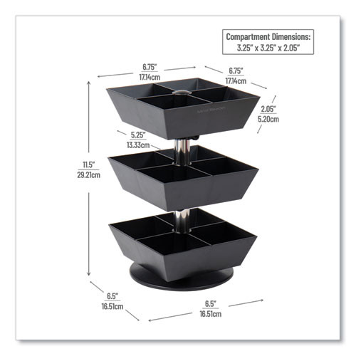 Anchor Collection 3-Tier 12-Compartment Tea and Condiment Carousel Countertop Organizer, 6.75 x 6.75 x 11.5, Black