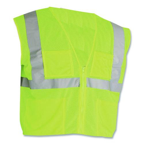 Ansi Class 2 Four Pocket Zipper Safety Vest, Polyester Mesh, 4x-large, Hi-viz Lime Yellow