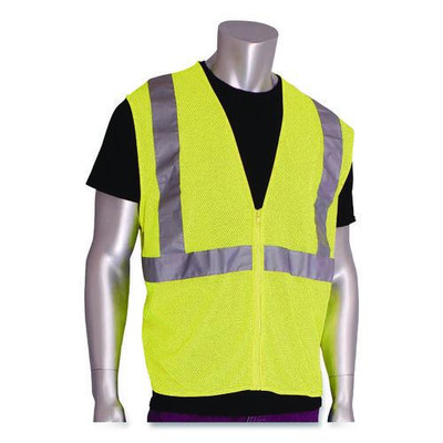 Ansi Class 2 Two-pocket Zipper Mesh Safety Vest, X-large, Hi-viz Lime Yellow