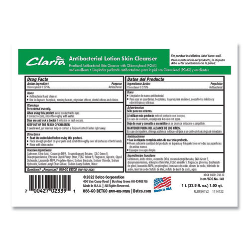 Antibacterial Lotion Cleanser, 1 L Dispenser Refills, 6/Carton
