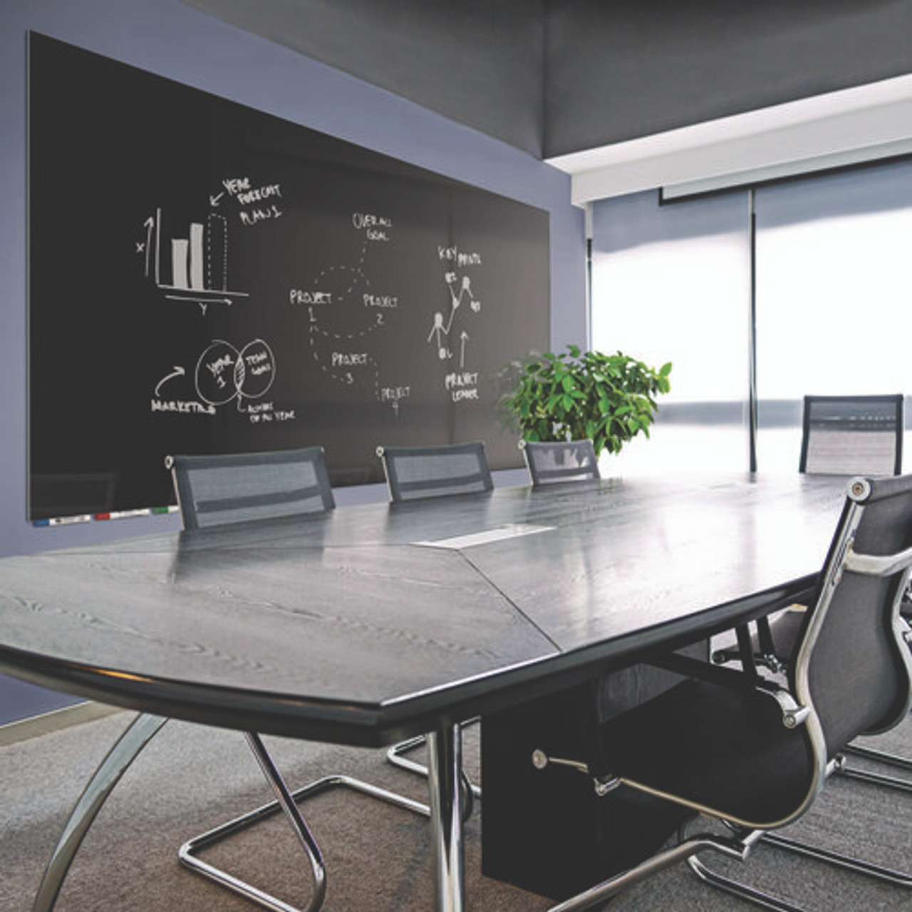 Aria Low-profile Frameless Magnetic Glassboard, 36" X 24", Black Surface