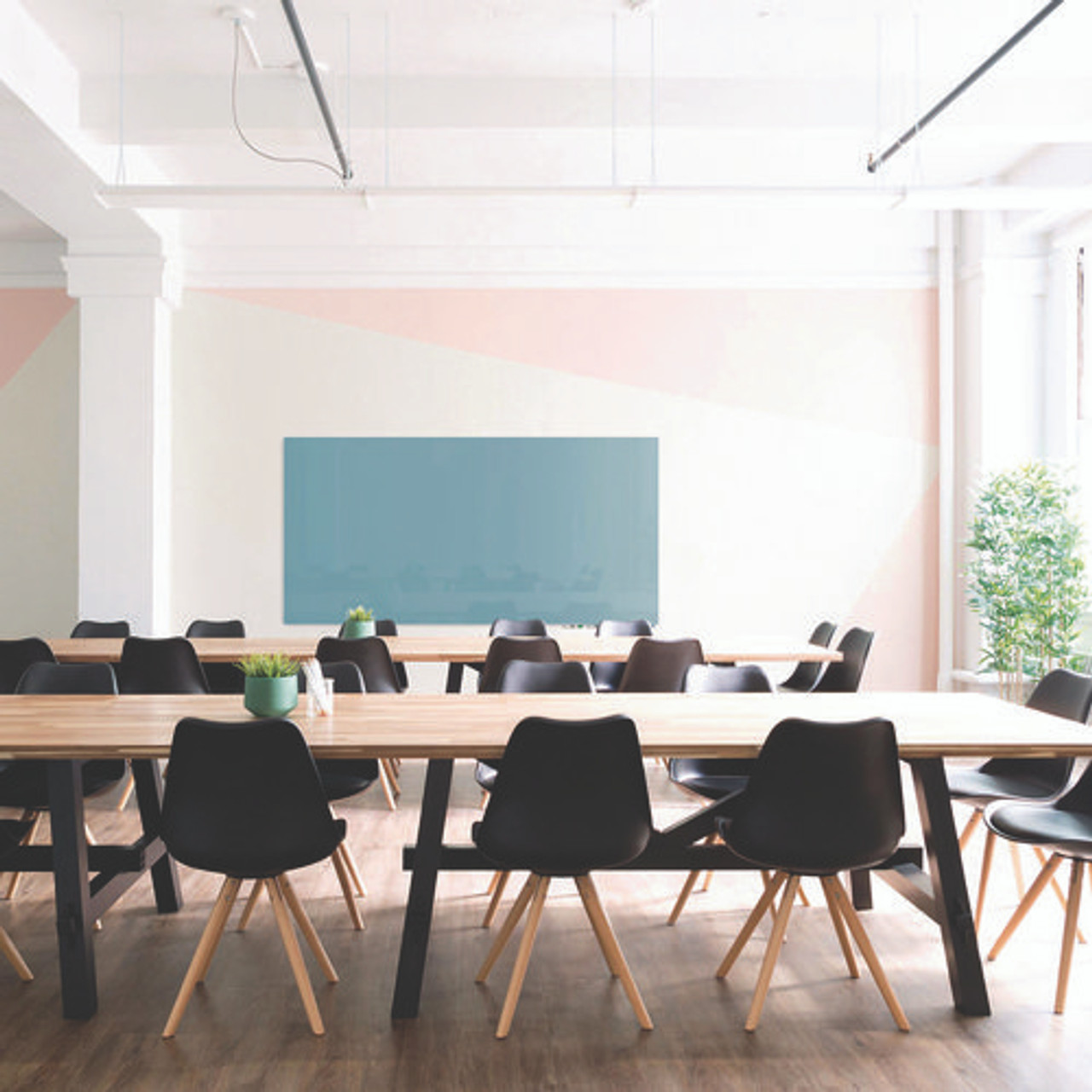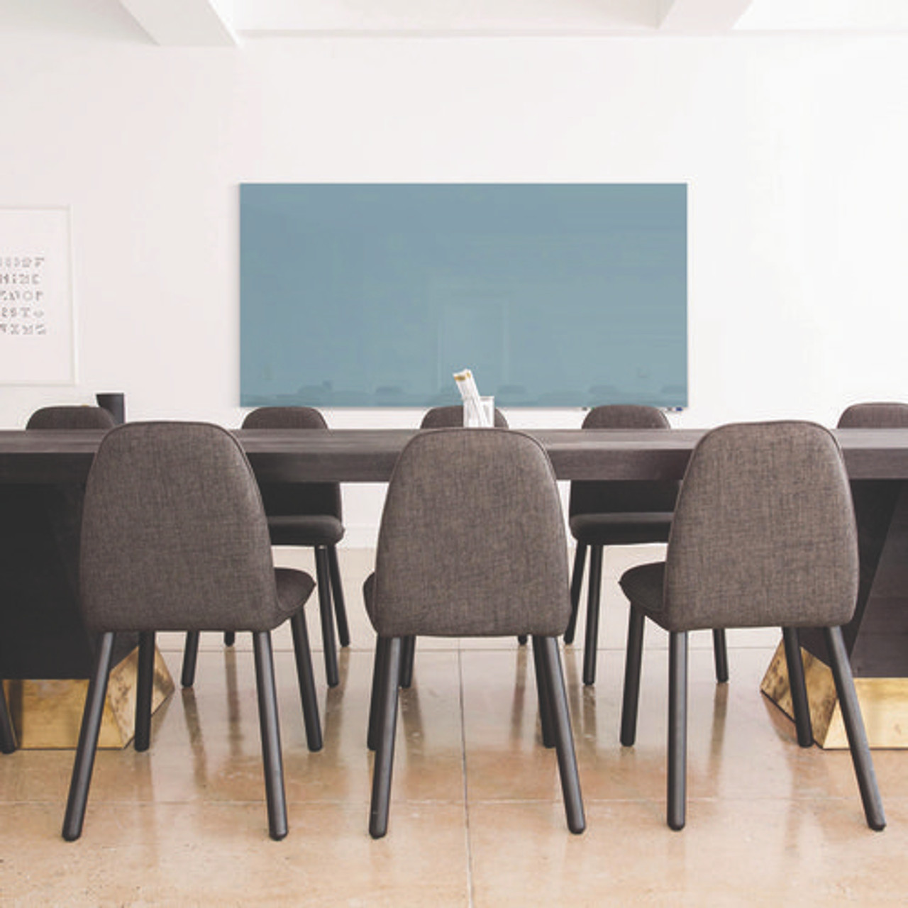Aria Low-profile Frameless Magnetic Glassboard, 60" X 36", Denim Blue Surface