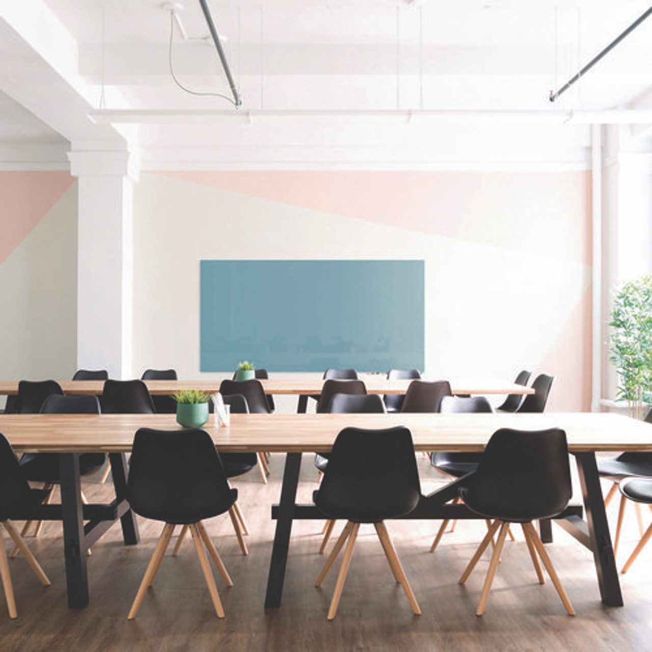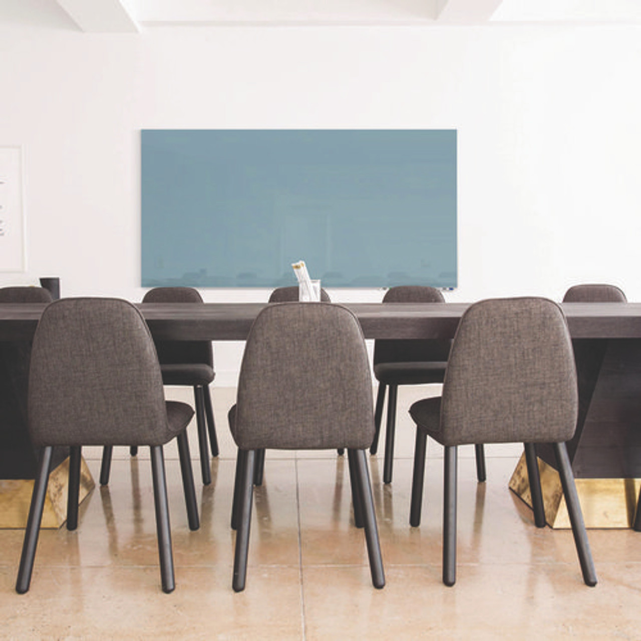 Aria Low-profile Frameless Magnetic Glassboard, 96" X 48", Denim Blue Surface