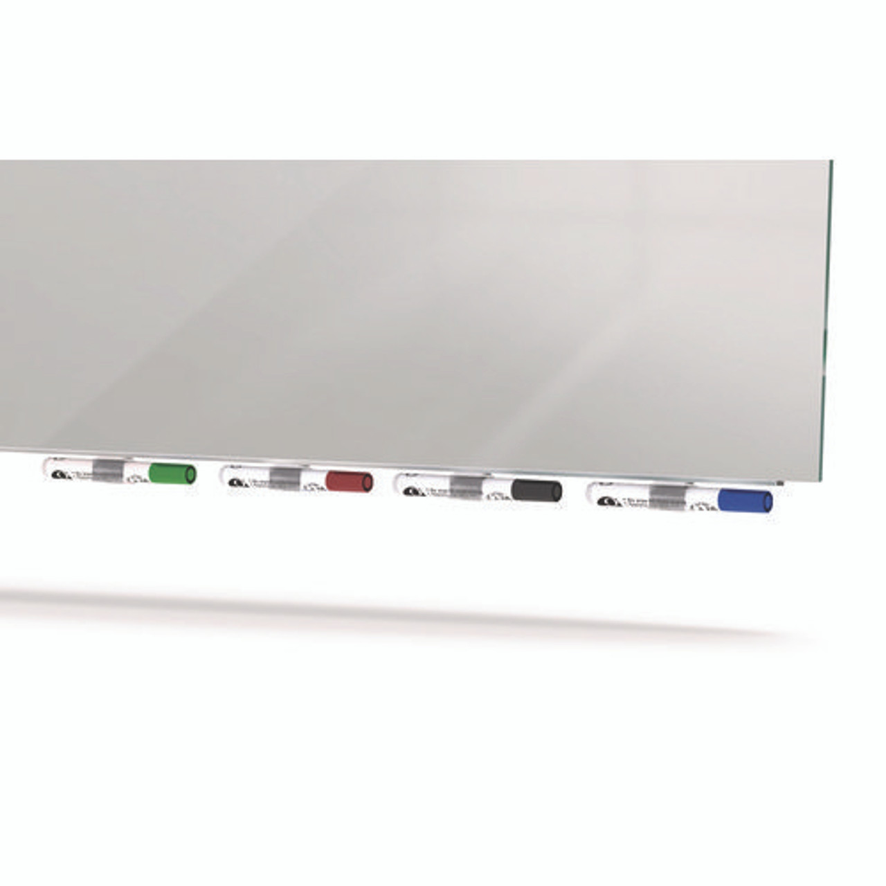 Achieve the look of weightless, floating glass. With no visible hardware or stand-offs, Aria Low-Profile Frameless Magnetic Glassboards allow the beauty of the floating design to create an unobstructed dry erase surface that complements any environment's decor. Its premium, quarter-inch, tempered glass surface also provides easy-erase, ghost-resistant performance, while a steel support beam running below and beneath the surface doubles as an integrated magnetic storage area to help you keep your writing surface clutter-free. Heavy-duty, wall-mount system places the writing surface a half inch from the associated wall, and it does so with a level of stability that rarely fails to promote feelings of security and confidence. With Aria glassboards, you can be confident your board will never bow, strain or move from the wall. Proprietary system also allows you to either hang a single board or line up several to create a full dry erase wall with nearly imperceptible seams. Aria boards mount to a variety of surfaces including, but not limited to: drywall, plaster, concrete and brick. All glassboards ship in Ghent's worry-free packaging, which was designed specifically for protecting glassboards in transit.