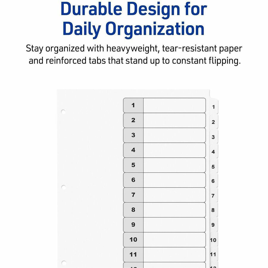 Avery Dividers, 12 Tabs, Ready Index (3 Sets of 11078) - 36 x Divider(s) - 36 Tab(s) - Digit - 1-12 - 12 Tab(s)/Set - 8.5" Divider Width x 11" Divider Length - 3 Hole Punched - White Paper Divider - White Paper Tab(s) - Hole-punched, Printable, Pr...