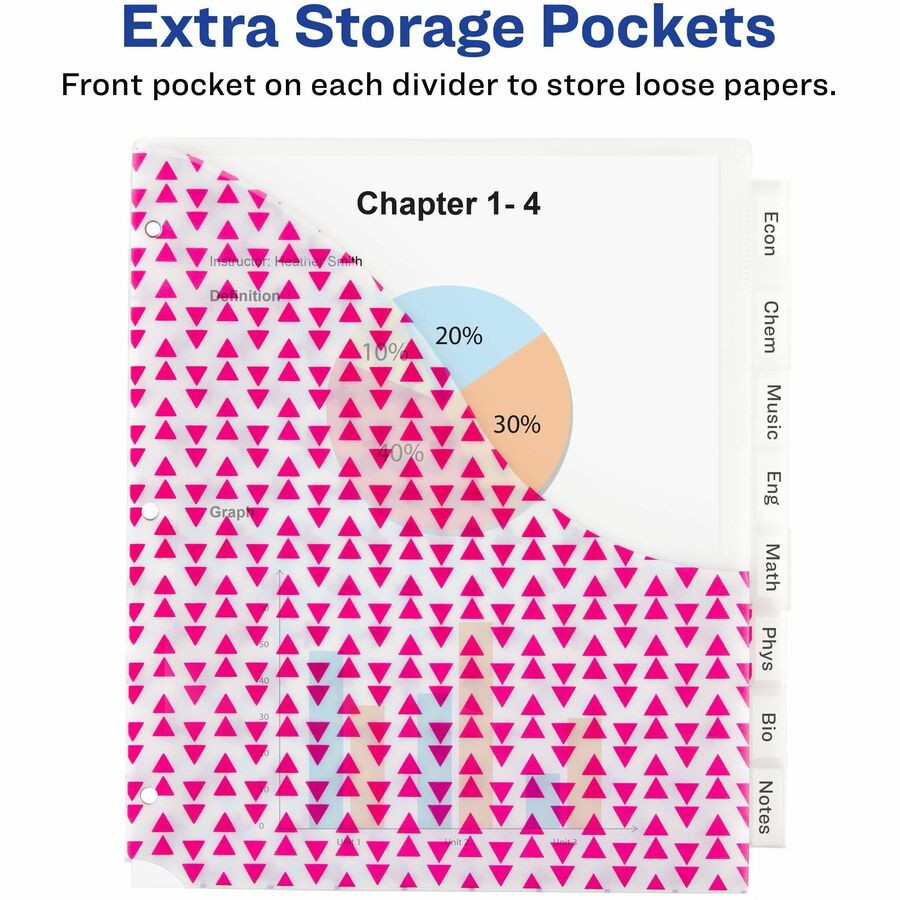 Avery® Big Tab Plastic Dividers with Pockets, 8-Tab - 8 x Divider(s) - 8 Tab(s) - 8 Tab(s)/Set - 9.3" Divider Width x 11.25" Divider Length - 3 Hole Punched - Multicolor Plastic Divider - Clear Plastic Tab(s) - PVC-free, Hole-punched, Insertab...