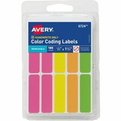 Avery® Rectangular Removable Color Coding Labels on Small Sheets - 1/2" Height x 1/2" Width x 1 3/4" Length - Removable Adhesive - Rectangle - Neon Pink, Neon Yellow, Neon Orange, Neon Green - Paper - Removable, Peel & Stick - 10 / Sheet - 18 ...