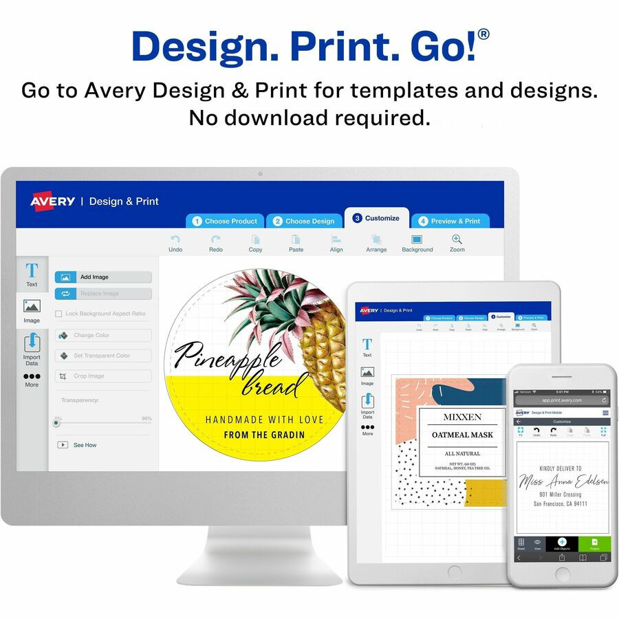 Avery® Sure Feed Glossy Labels - Waterproof - 2" Width x 2" Length - Permanent Adhesive - Square - Inkjet, Laser - Glossy Crystal Clear - Crystal Clear - Film - 12 / Sheet - 12 Total Sheets - 120 Total Label(s) - 10 / Pack