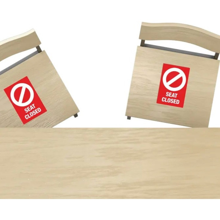 | Marketing Information: | Help your customers practice healthy habits using Preprinted Surface Safe ID Chair Decals labeled Seat Closed." These informative signs quickly let people know which seats are open and which are not available so that they can easily find open spots. |