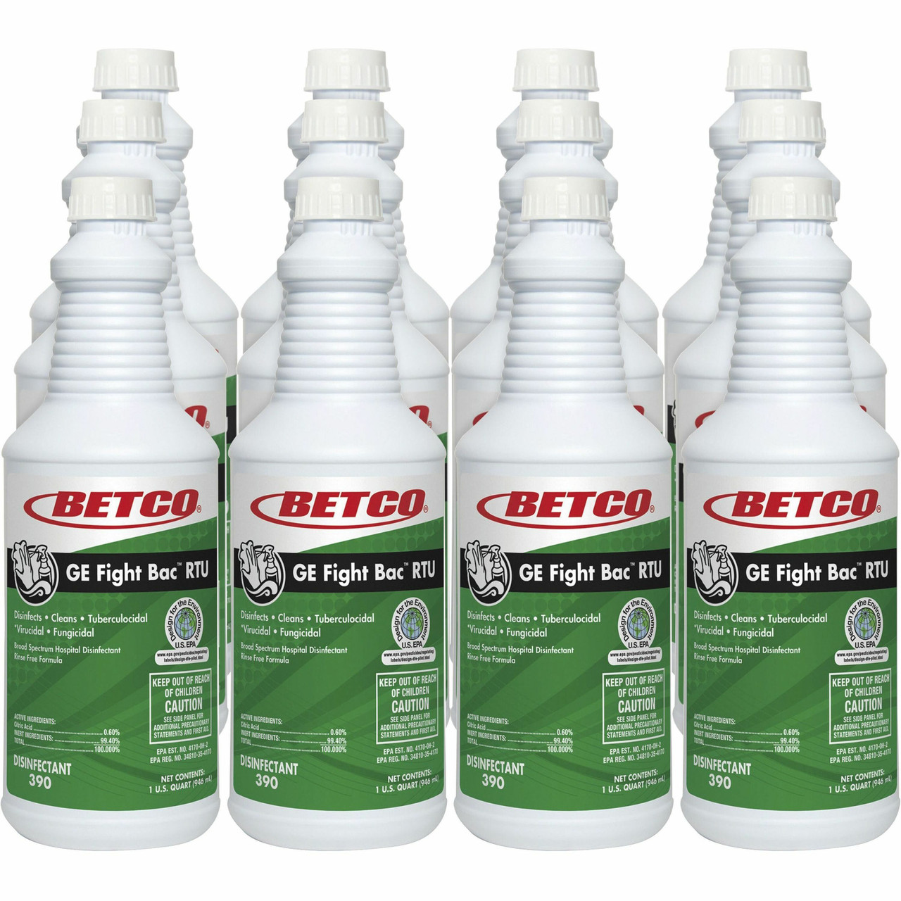 Betco GE Fight Bac RTU Disinfectant - Ready-To-Use - 32 fl oz (1 quart) - Fresh Scent - Rinse-free, Non-irritating - Clear - 12 / Carton
