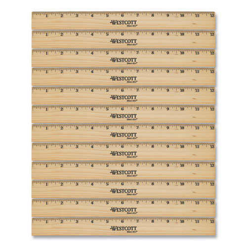 Beveled Wood Ruler, Standard, 12" Long, Natural Hardwood, 12/pack