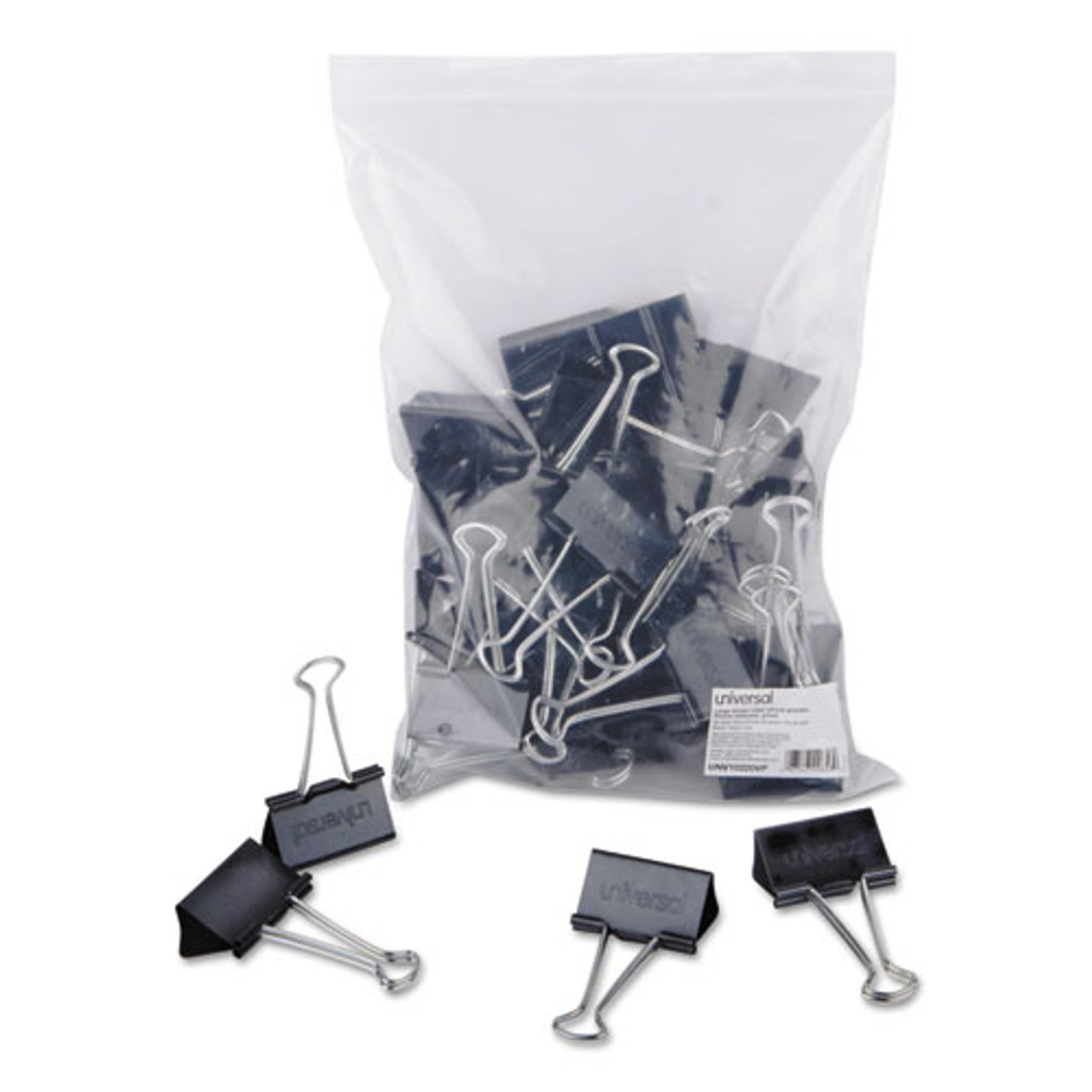 Binder Clips In Zip-seal Bag, Large, Black/silver, 36/pack