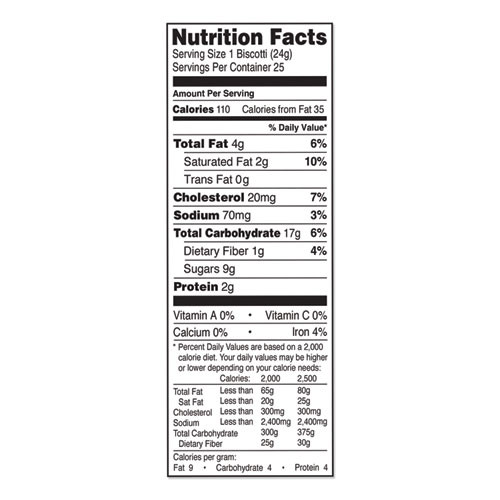 Biscotti, Dark Chocolate Almond, 0.85 oz Individually Wrapped, 25/Pack
