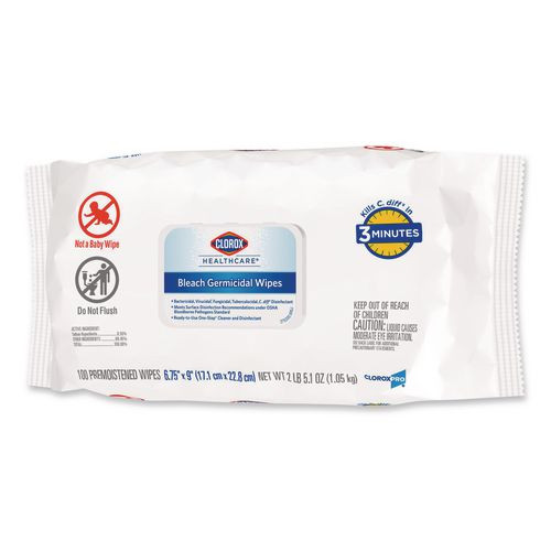 Bleach Germicidal Wipes, 6.75 X 9, Unscented, 100 Wipes/flat Pack, 6 Packs/carton
