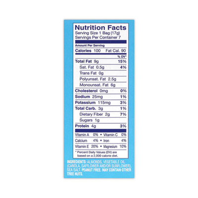 Choose Options Blue Diamond® Oven Roasted Sea Salt Almonds, 0.6 oz Bag, 7 Bags/Box, 6 Box/Carton Crunchy, natural, whole almonds in an easy good to go pouch, these Blue Diamond Almonds pouches are full of delicious oven roasted, sea salt Almonds and 4 grams of protein. These nut snacks are a... Choose Options