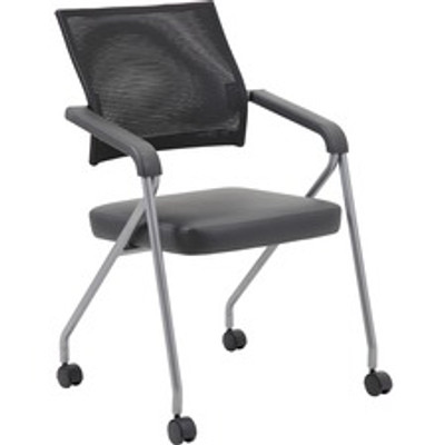 Boss Caressoft Plus Training Chair - Black Seat Color - Vinyl Seat Material - Black Back Color - Mesh Back Material - Pewter Frame Material - Four-legged Base - Armrest - 2 / Carton