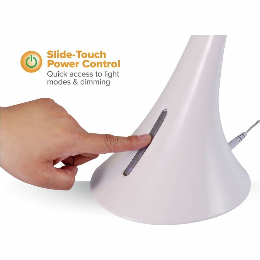 Bostitch Modern Desk Lamp - 8 W LED Bulb - USB Charging, Dimmable, Color Temperature Setting, Adjustable Brightness, Flicker-free, Glare-free Light, Flexible, Touch Sensitive Control Panel - Desk Mountable - White - for Desk, Relaxing, Reading