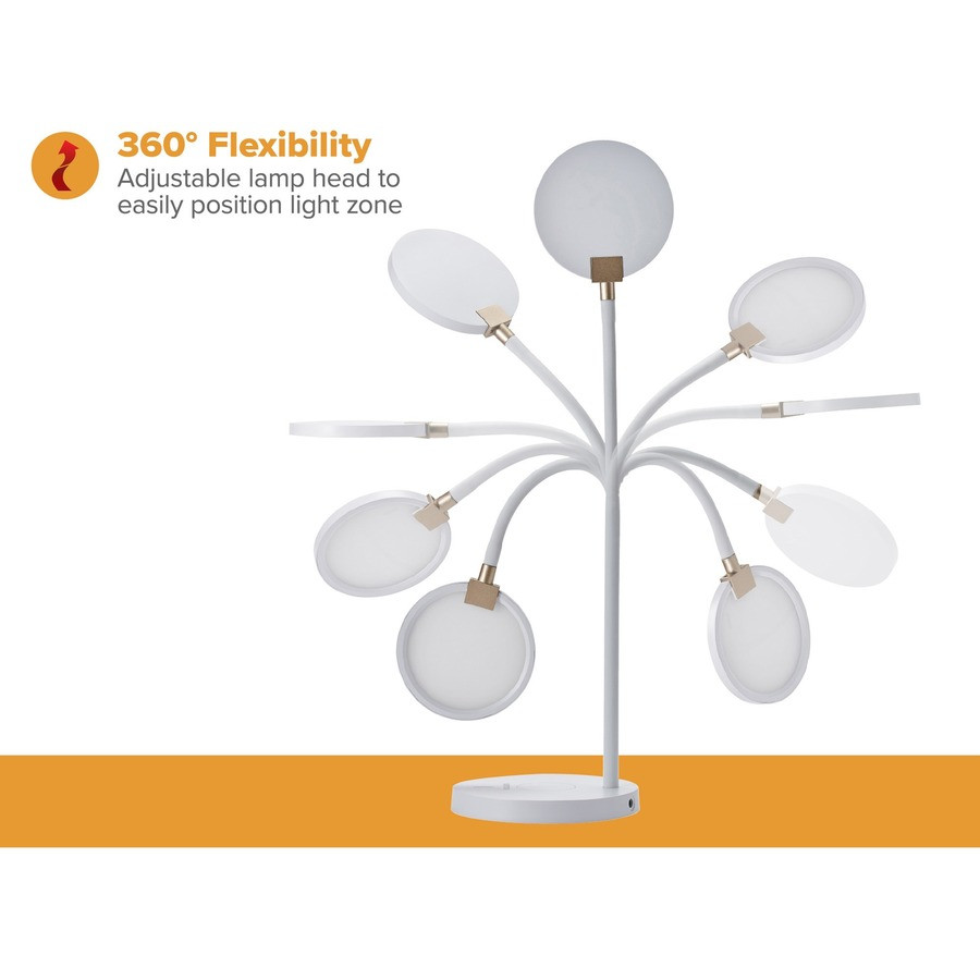 Sleek, minimalist design meets functionality with this Qi Wireless Charging LED Desk Lamp. Wireless charging pad quickly charges Qi-enabled devices and various electronics without inconvenient, messy wires. Wireless pad keeps your phone within reach for effortless viewing. Easy-to-use, touch-sensitive power control features a dimmer function with three brightness levels to meet your lighting needs. True-white, LED lighting helps enhance your productivity when completing tasks. Round lamp head maximizes illumination. Flexible, silicone neck allows you to easily position, creating an effective light zone.