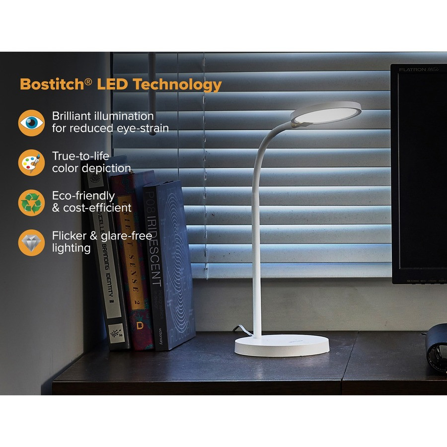 Bostitch Qi Wireless Charging LED Desk Lamp White - LED Bulb - Adjustable Brightness, Flexible, Touch Sensitive Control Panel, Dimmable, Glare-free Light, Flicker-free, Adjustable Head, Qi Wireless Charging - Desk Mountable - White - for Home, Sma...