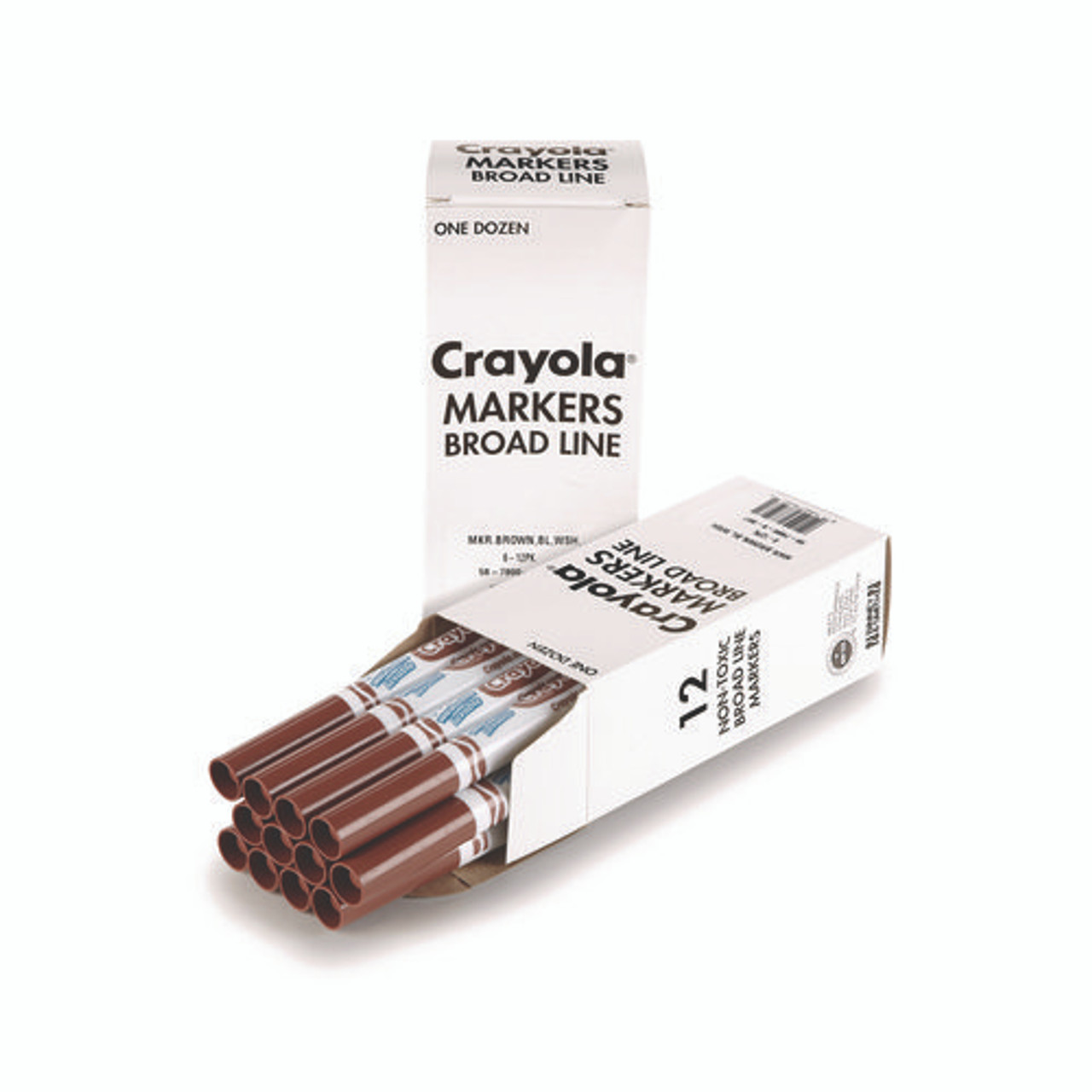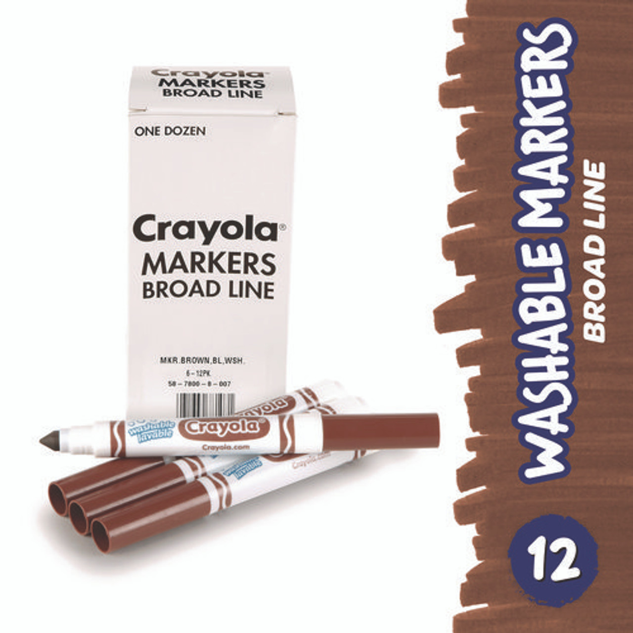Broad Line Washable Markers, Broad Bullet Tip, Brown, 12/box