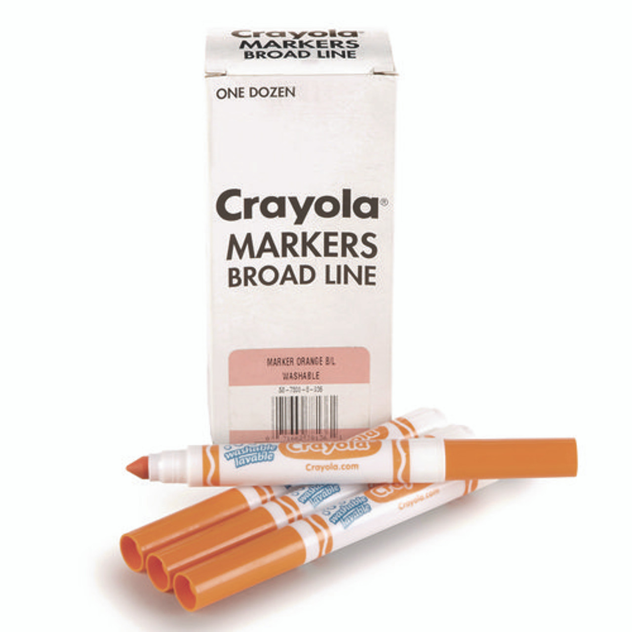 Broad Line Washable Markers, Broad Bullet Tip, Orange, 12/box
