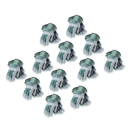 Bronze Series Leather/fabric Work Gloves, Medium (size 8), Gray/green, 12 Pairs